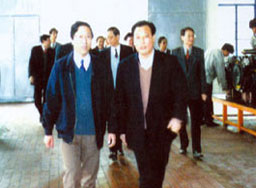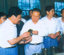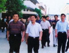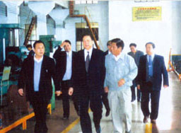 | 梁省長(cháng)(前左一)在董事長(cháng)陪同下視察企業(yè) | 原副省長(cháng)俞興德到生產(chǎn)車(chē)間視察工作 |