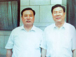 | 社會(huì )保障部鄭部長(cháng)(右一)在北京親切接見(jiàn)董事長(cháng) | 廣電部孫部長(cháng)(左一)來(lái)公司視察工作 |